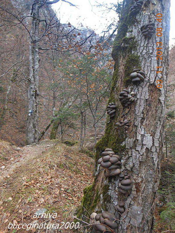 3:)) Azi, niste prieteni plecau dupa astfel de ciuperci. Nu m-am dus, ca nu ma pasioneaza prea tare. Insa cum este sa gasesti atatia bureti negri, pe unul dintre cele mai circulate trasee turistice din Bucegi? Se vede marcajul cruce albastra mai in fata. Dupa parerea mea, aceste ciuperci stateau pe copac de vreo 3 zile, cel putin. Eu le-am gasit duminica, pe langa ele trecusera cel putin 30 persoane. Sambata, cu siguranta au fost minim 100 de persoane. Toate au trecut pe langa ei…