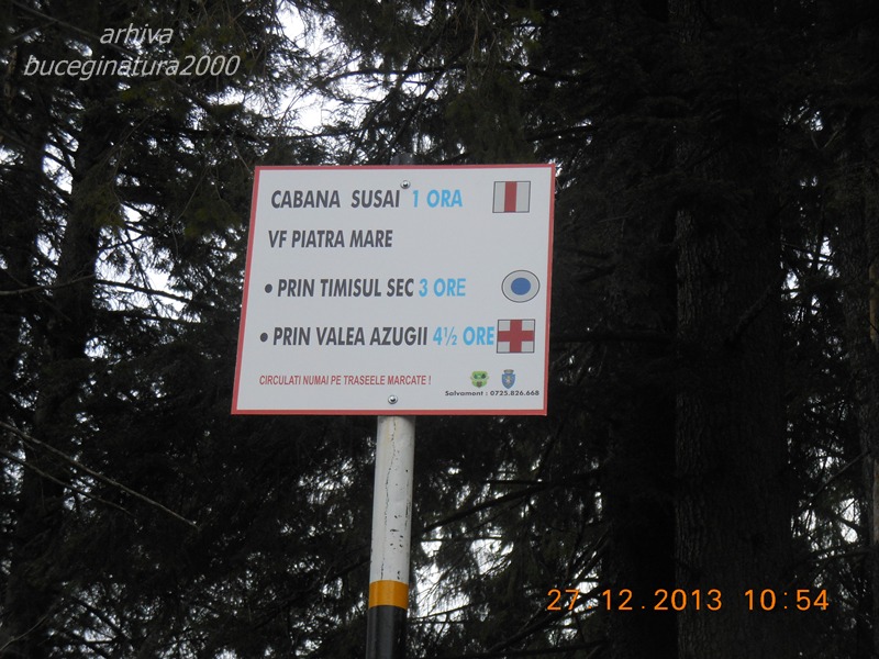 Aici am ajuns la o intersectie. Inainte, pe marcaj cruce albastra, ajungeam in 30 minute la cabana Susai, in stanga ieseam in Valea Azugii pe drum, iar in dreapta drumul urca spre cabana Susai. Noi, tot inainte…
