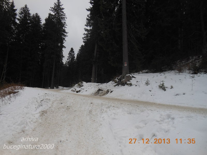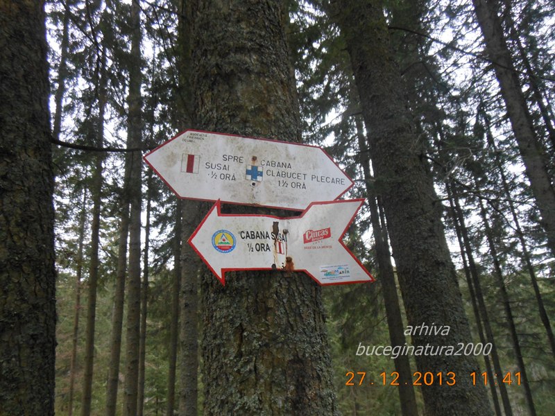 Am intersectat din nou drumul. Marcajul pana la cabana Susai este banda rosie