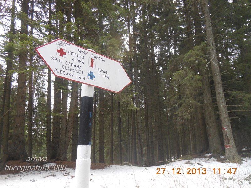 Indicatoare mai vechi, important era traseul cu cruce albastra pe care am decis sa ne intoarcem