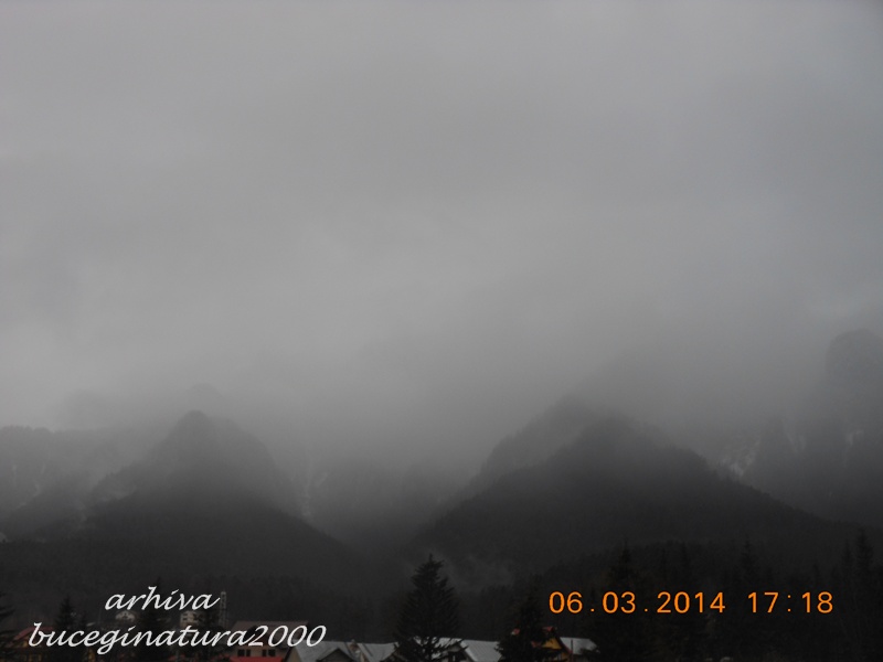 Mai departe, peisaje cu ploi si ninsori, pe munte la peste 1500 m altitudine este iarna. Sa vedem acum cand va cobori in Valea Prahovei.