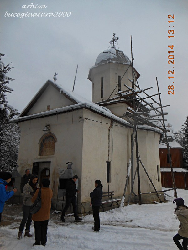 La intrarea in biserica astepta un om care cerea ajutorul altora. De-abia mergea. Cum a urcat omul acela serpentinele acoperite de gheata pana sus la schit, este un mic mister. Mi-a spus ca era pentru prima oara la acea biserica. Ma intreba si cand se termina slujba. Pe la 12, i-am zis… era in jur de 11, iesisem sa iau lumanari. Cand m-am intors, spunea ca asa cu probleme cum era, a vrut sa dea zapada cu o lopata, sa faca un culoar de trecere intre casa preotului si biserica, dar nu l-a lasat o doamna. Imi arata urmele lopetii… La terminarea slujbei era tot acolo, afara, in fata usii. Il si auzeam de dinauntru cand dadea cu bocancii in zid, inghetase, probabil… Cum a plecat, nu se stie… ca erau doar doua masini, ale unor localnici. Nici pe jos nu l-am vazut.