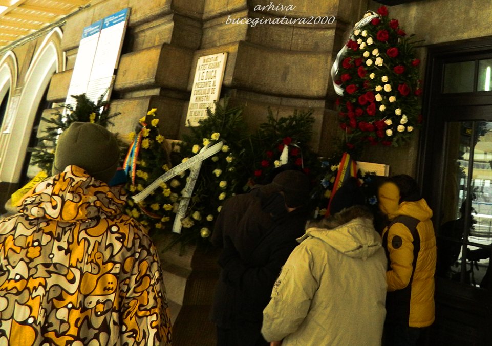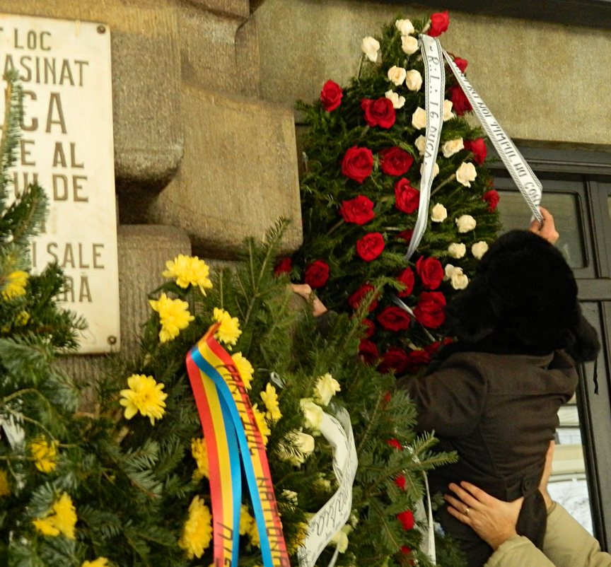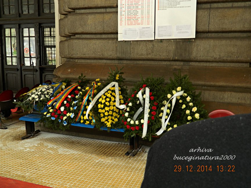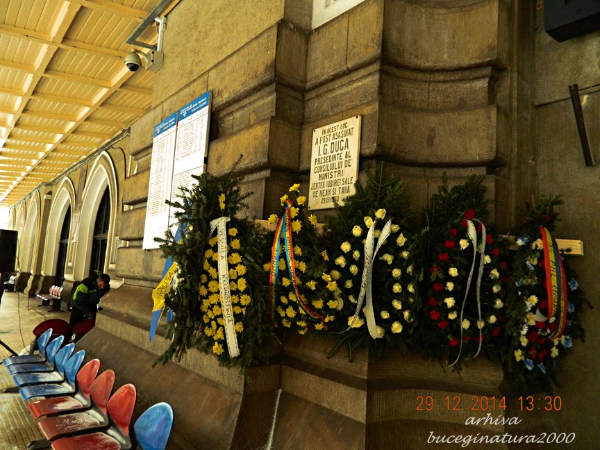 I.G.Duca, prim ministru liberal, a fost impuscat de catre legionari pe peronul garii din Sinaia, in data de 29 decembrie 1933. In fiecare an, este comemorat de catre liberali, rude, etc. In 2013, intr-o imagine, aparea primarul din Sinaia si in spatele sau mai multe coroane de flori. Trec eu la o ora tarzie si vad ca mai aparuse intre timp inca o coroana. Nimic neobisnuit! :) Cand am vazut ce scria pe ea, am ramas oarecum. Adica, „Pentru noi timpul nu conteaza” suna intr-un anume fel.