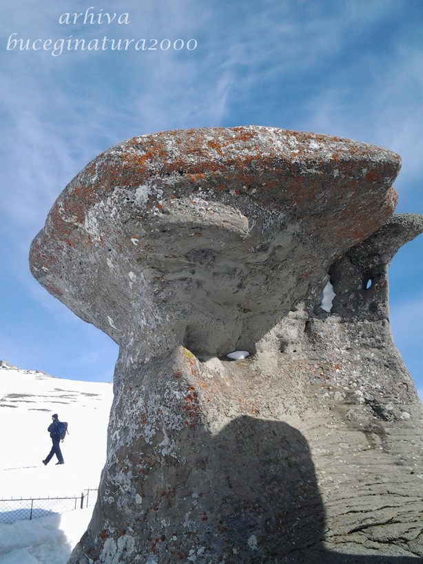 Imi inchipuiam ca asa va fi. Ajung la telecabina din Busteni care functiona de la 10:30 si asa am ajuns sus pe Platoul Bucegilor, la Babele. Bineinteles ca gardul metalic de la aceste monumente naturale era sub zapada, asa ca poti trece direct printre Babe :) Am stat pe acolo vreo 10 minute spre disperarea colegului de excursie… care era deja la Sfinx. Apoi am stat si mai mult pe la Sfinx.