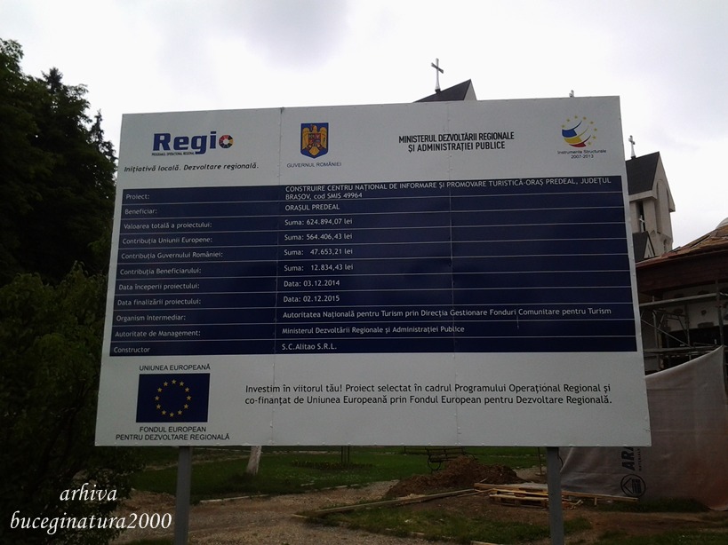 Da, atat costa: 625.000 lei. Deci nici cand ai bani suficienti nu poti face lucruri ca lumea… ca decide cine stie cine ce proiect este cel mai bun. O astfel de cladire mie nu-mi spune nimic, pare lipsita de identitate. Orice om de bun simt cand va privi panoul acesta si apoi chioscul va gandi ca palaria este mult prea mare pentru ce are in fata ochilor: un chiosc denumit centru national bla-bla care va reprezenta tot turismul predelean?!?