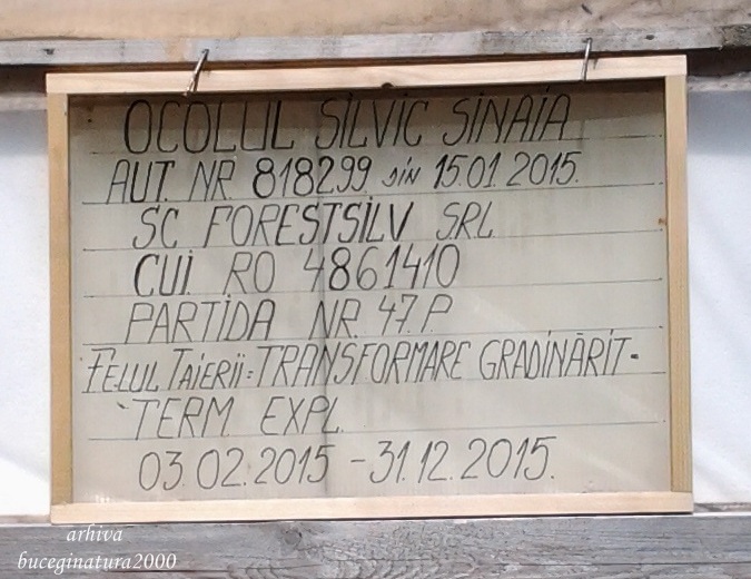 Panou la Valea Rea. Cine a fost prin acea zona in luna mai, urcand spre Poiana Narciselor l-a putut observa. Un astfel de panou ar trebui sa gasiti la orice exploatare forestiera. Uneori nu sunt si apar doar cand se stie ca vin controale.