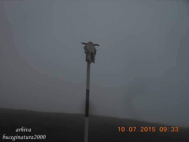 10.07.2015 002Cineva probabil a vrut sa semnalizeze mai bine traseul si a urcat craniul acela pe stalp.