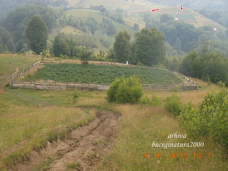10.07.2015 017Multe astfel de pante am urcat si coborat. Sagetile rosii arata pe unde venisem. Este si un drum in stanga, pe care nu se poate decat greu urca, cu vreo motocicleta.