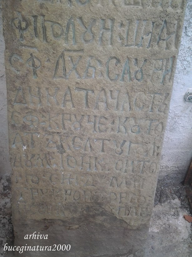 Datorita trecerii timpului nu se mai cunoaste ce scria la baza