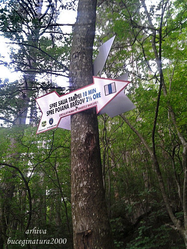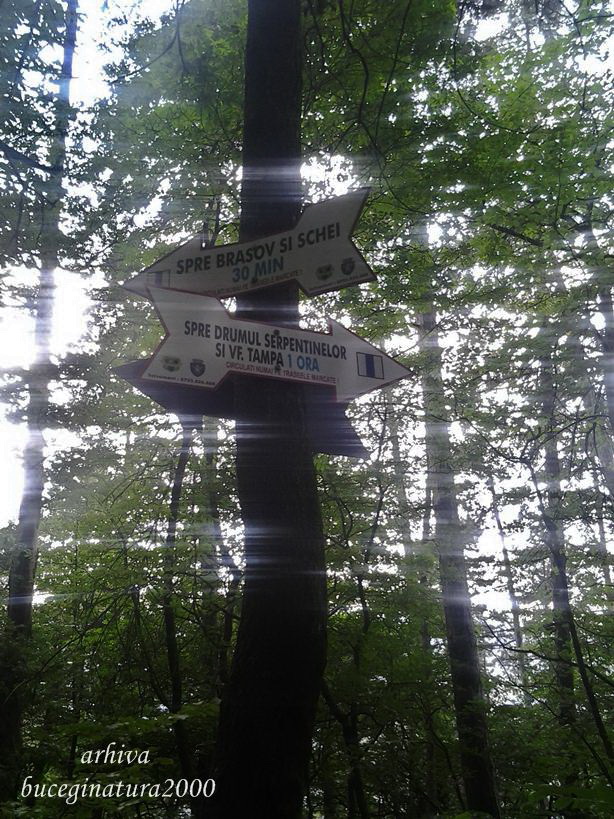 Sunt cateva zeci de troite prin Brasov, si zic eu, ca pe acelea mai importante le stim si noi. Am intrat in padure, pe o alee mica, pe langa o casa, ajungand intr-o poteca nemarcata. Tinand directia, adica urcand spre stanga, dupa circa 20 minute am ajuns intr-un traseu turistic: