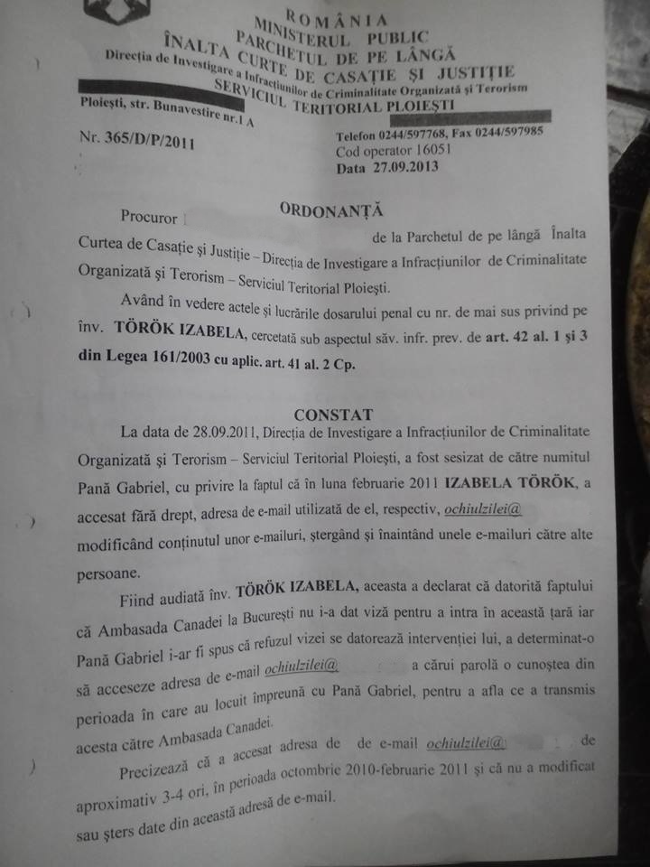 Intr-o alta adresa, se spune ca d-na Izabela Torok regreta cele intamplate. Nu postez tot, cu scuzele de rigoare, pentru ca este o poveste a 2 oameni pe care odata, i-a legat niste sentimente… relatia s-a sfarsit, am vrut sa arat ca exprimarile d-lui Pana au si girul actelor.