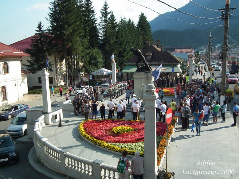 S-ar putea spune ca in piateta monumentului s-au strans circa 150 de persoane. Cred ca utile ar fi niste banci in aceasta zona… sa mai stea turistii si pe ele si sa admire centrul, monumentul, muntele.