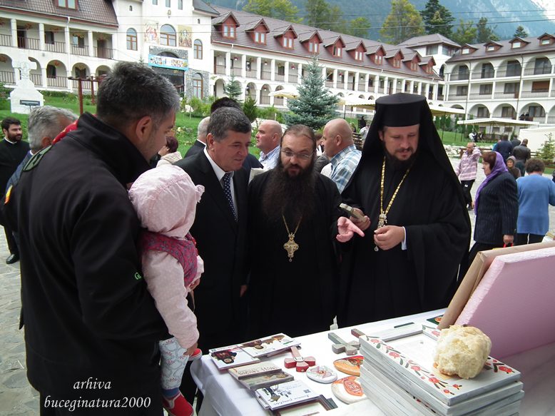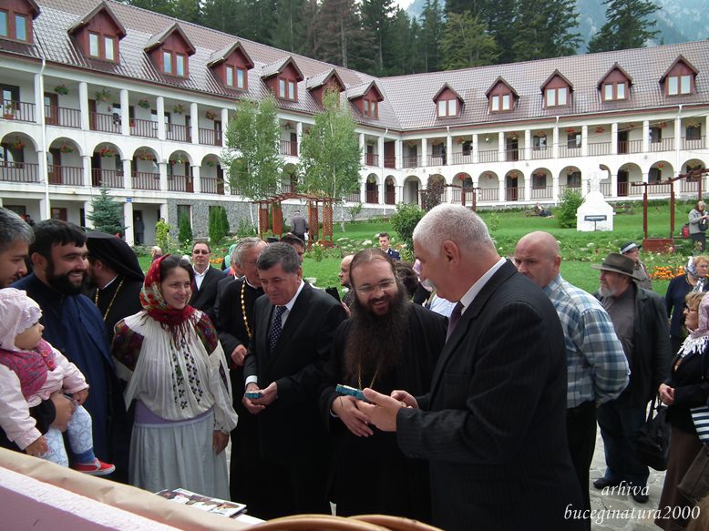 Nu puteau lipsi Staretul Manastirii Sinaia si Parintele Protopop Costica Dumitru. Pe acesta din urma, l-am surprins de mai multe ori, in timp ce vorbea Staretul David, privind concentrat spre Crucea de pe muntele Caraiman: