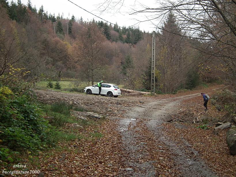 De aici incepe drumul forestier. Pentru cei obositi, daca sunt atenti, vor observa pe marginea drumului o scandura pe care este scris un nr. de taxi. Ca atare, poate veni cineva sa-i ia de acolo, ca sa nu mai mearga si pe acel drum forestier.