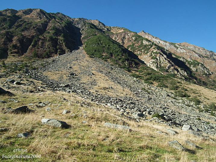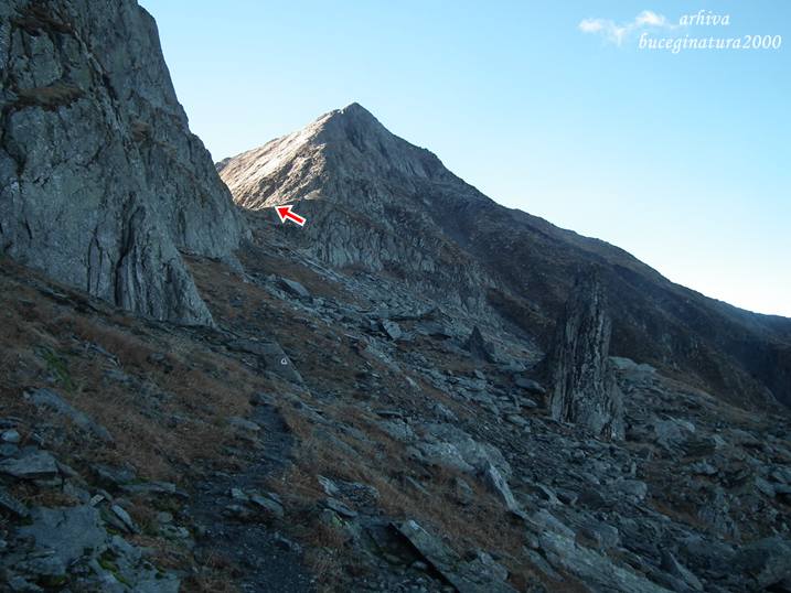 Si cam de pe aici, incepe un urcus accentuat spre creasta, iesind in aceasta prin Portita Vistei.