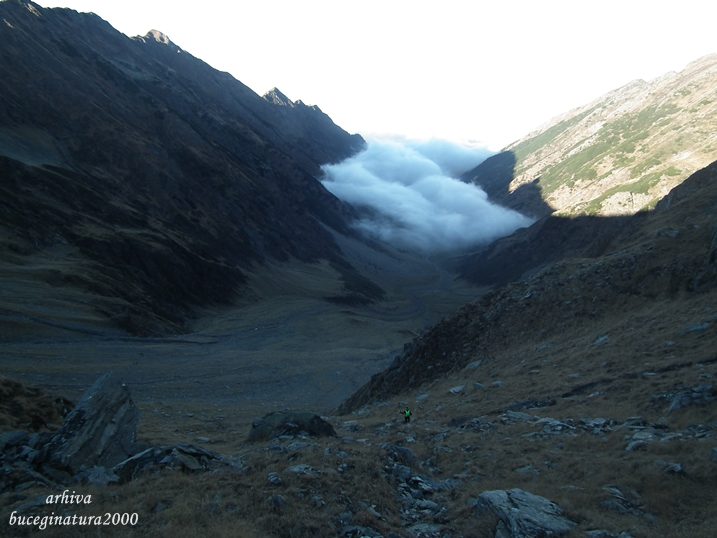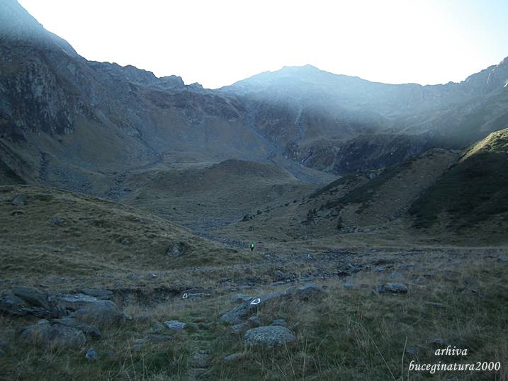 Lacul de sub varful Moldoveanu, mai exact din Valea Rea, pe acolo continua traseul nostru initial, marcat cu triunghi rosu. Poza aceasta am facut-o cand ne-am intors iar la Portita Vistei. Am mers pe 3 marcaje: din marginea padurii si pana in creasta Fagarasilor pe triunghi rosu, din creasta si pana la varful Vistea Mare pe banda rosie, de la acest varf si pana pe Moldoveanu pe marcaj punct rosu.