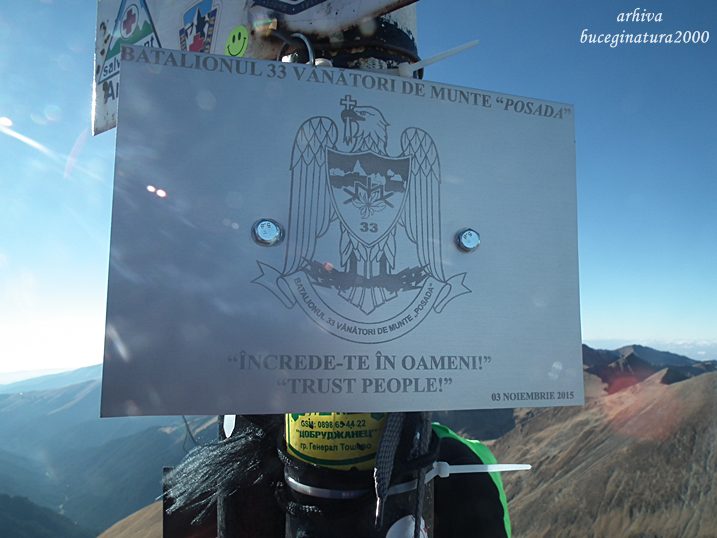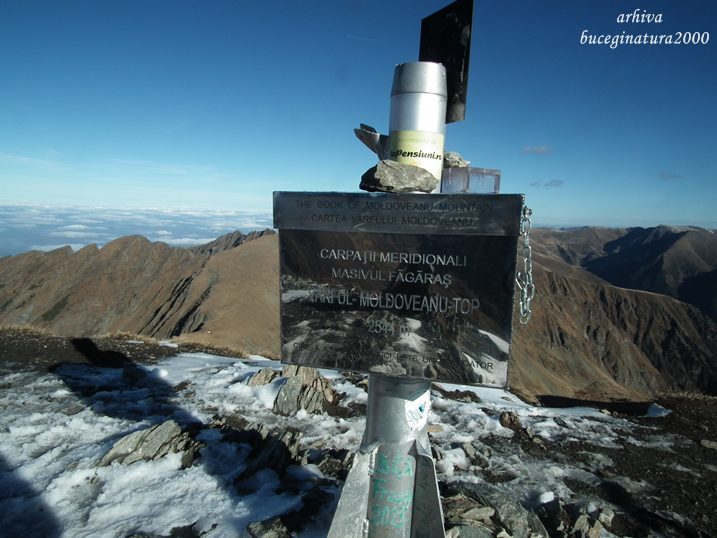 Aici gasim cartea varfului Moldoveanu. O idee exceptionala… cineva a carat o cutie metalica si o carte groasa, unde sa-ti treci gandurile/impresiile. Pe cutie mai scrie „cine a ajuns aici, este un invingator”… dar intr-un elan de modestie, am zis ca probabil se refera si la altii, noi am fost mereu asa ceva :))
