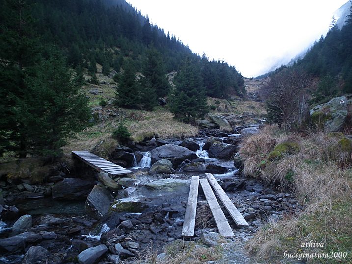 Dupa sedinta foto am plecat… pozand un pic si zona din apropiere, ca sa se vada ca este periculos in aceasta perioada. Ai alunecat, ai zburat in vale… Oricum, in poza pare mai plat decat este in realitate, dar nu este asa. Noi am mers din piatra in piatra, a fost si fain, dar ne-au mai tremurat si „stiksurile” :)