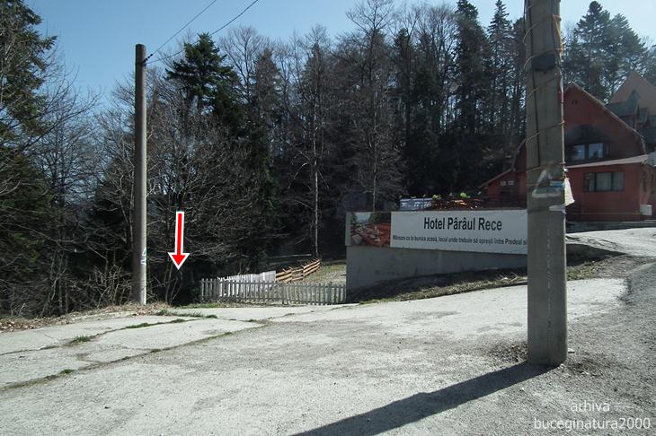 De la Trei Brazi urmam traseul spre Paraul Rece (o mini-statiune ce tine tot de Predeal), marcajul triunghi albastru regasindu-se la o distanta de vreo 200 metri de sosea. Este vizibil din parcarea noului hotel Trei Brazi.