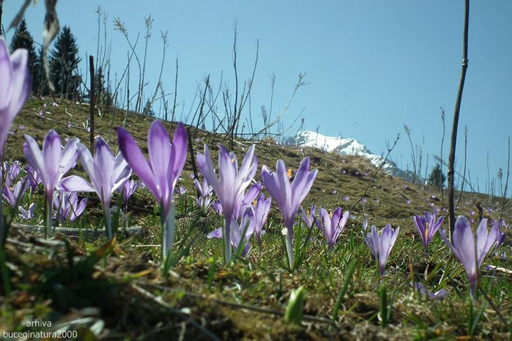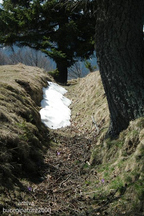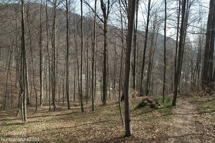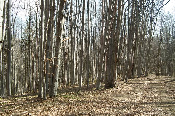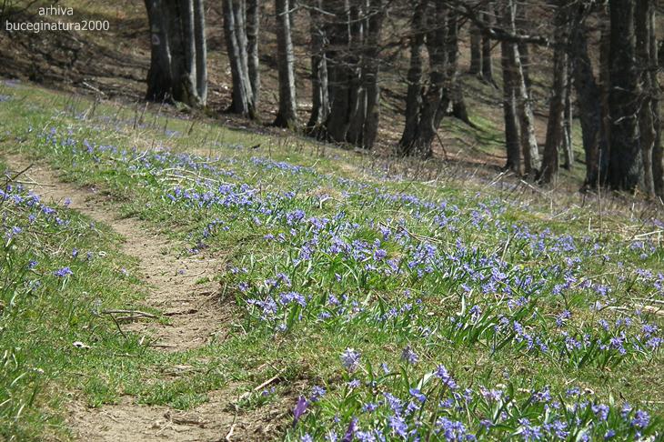Ne apropiem de padurea de pe Muchia Lunga pasind pe langa un covor de viorele.