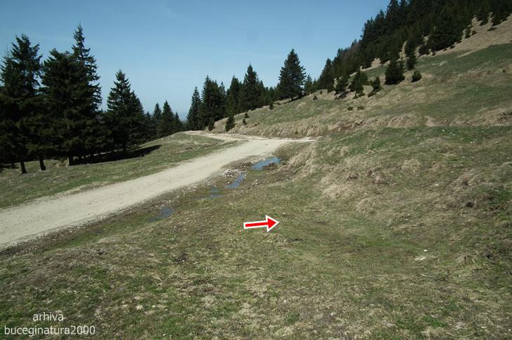 De acolo venim, de langa acea bariera. Asa ca, atentie! Nu este niciun indicator turistic, dar daca va uitati de la bariera inspre dreapta, spre locul de unde am facut aceasta poza, o sa vedeti un drum de pamant. Acesta este si traseul corect.