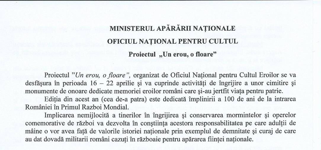 Despre proiectul „Un erou, o floare”