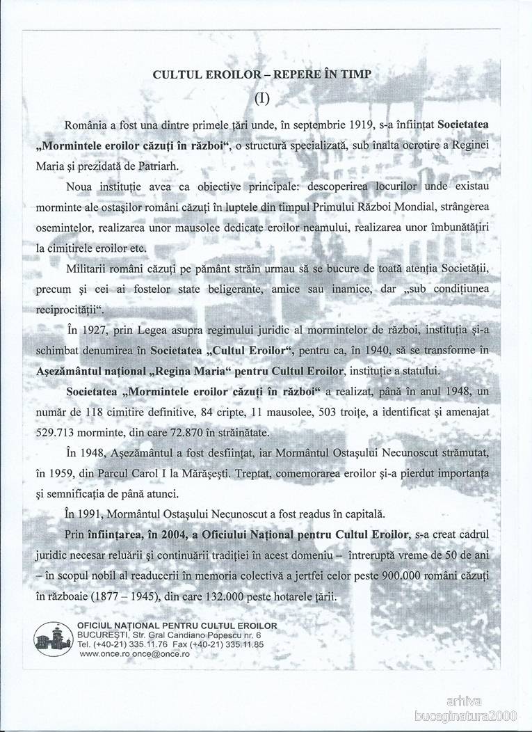 In acest an, Oficiul National pentru Cultul Eroilor a reusit sa implice multi tineri in actiuni de cunoastere a trecutului istoric… si de restaurare a unor monumente inchinate eroilor romani si straini.