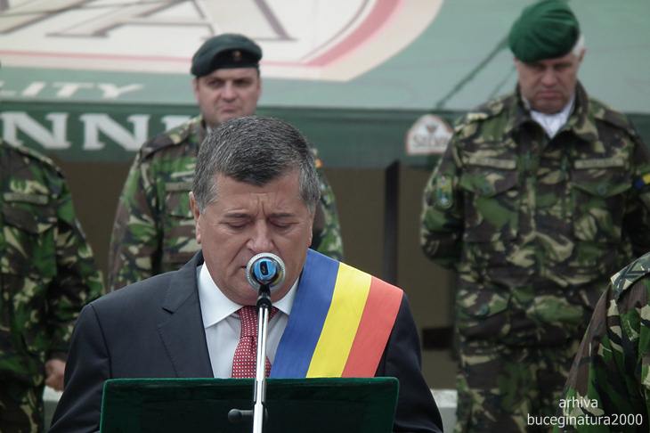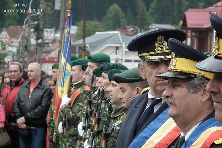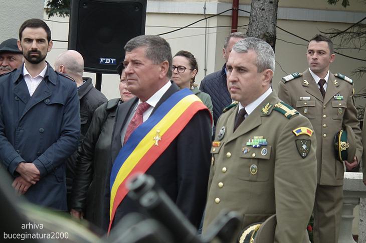 Primarul, d-l Rusoiu, bustenar cu grad de general, loctiitorul de la vanatori de munte, lt.col. Adrian Buzea, viceprimarul.