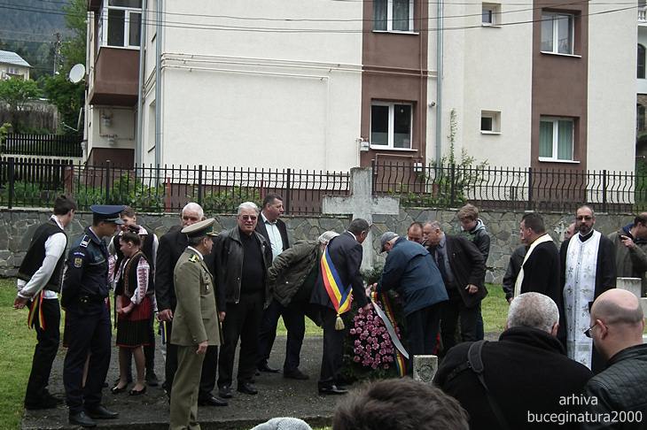 Primaria a depus o coroana de flori prin doi localnici, vanatori de munte.