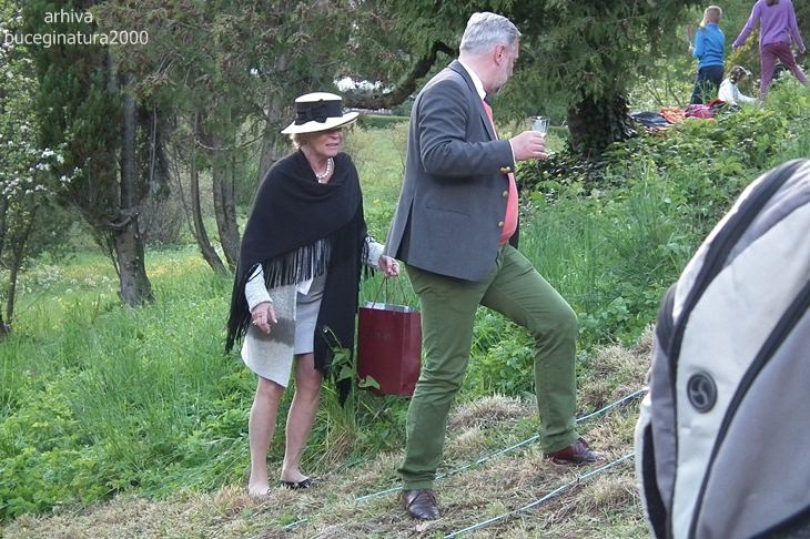 Organizatorii nu au pus un panou sau pe cineva care sa indrume invitatii, pe cei in costume, pe calea buna de acces… si acestia, bietii de ei, urcau pajistea, prin iarba si noroi, riscand sa cada. Sus la terasa ajungeau epuizati dupa atat urcus, si erau intorsi de jandarmi catre poarta de acces, adica inapoi si sa ocoleasca.