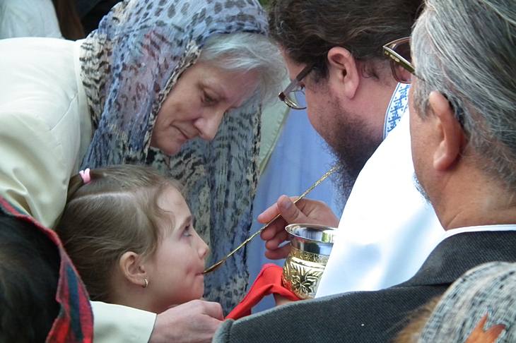 Impartasirea copiilor si a celor care trebuiau sa se impartaseasca in aceasta zi, a fost indeplinita de parintele Teofil, de parintele de la Busteni si de I.P.S. Laurentiu Streza.