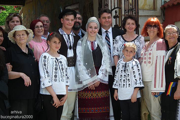 Localnici care au vrut sa se pozeze cu tinerii in port traditional si cu primarul.