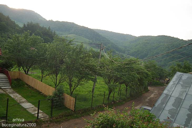 Pe drumuri comunale am facut pana la pensiune… nu stiu, destul de mult :) mai bine de o ora. Pana acolo am tot incercat sa-mi fixez toate informatiile si permanent m-am intrebat cum pot trai oamenii in zona asta. Este o splendida izolare, o liniste totala, o atmosfera coplesitoare. Nu sunt animale salbatice, nu vezi pasari, la Nucu sunt o mana de case ascunse de vegetatie interminabila, bagate toate intr-un fund de vale. Ori tragi lemne din padure, ori duci vacile la pascut. Alta activitate…