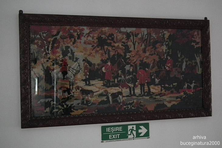 Toate holurile au niste decoratiuni speciale… aici pare o vanatoare la care participa soldati austrieci. Tabloul este tesut de mana, nu este o pictura sau altceva.