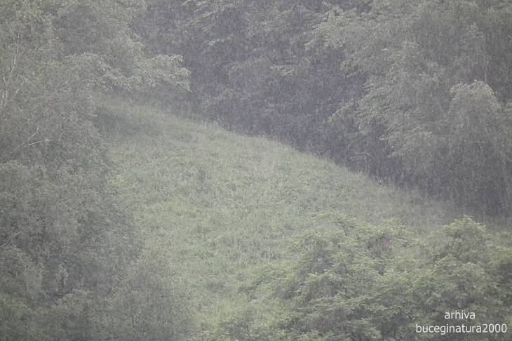 Din interior razbatea incredibil de frumos, glasul unui preot acompaniat de niste adolescenti. Aproape ca am uitat toti de ploaie. Probabil era un acatist al Sf. Agaton. Dar ne miscam si incepem coborarea putin ocolitor… ca panta cu traseul era plina de noroi. Trecem de Lacul Mistretilor, iesim din padure si ajungem la drumul de pamant care dupa ce ca era distrus si vai de el, acum era deja calamitat :)