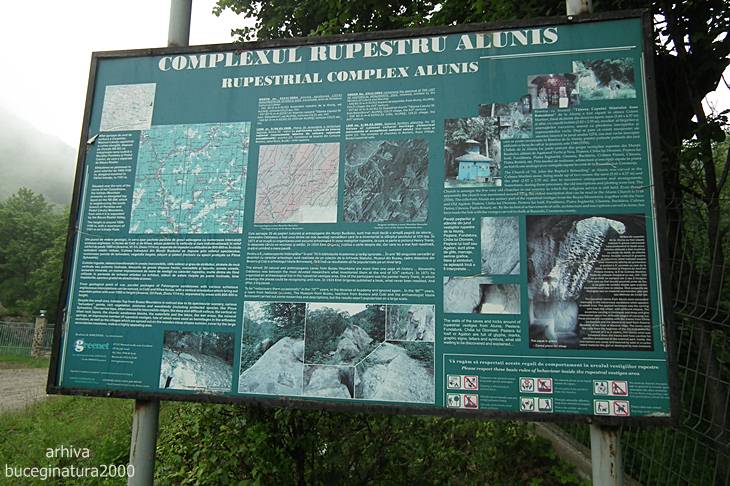 Deci traseele pe care le vedeti pe panou, au o valoare pur orientativa, nu va pot ajuta prea mult in teren. Traseul rosu este cel cu banda rosie si care inconjoara tot acest bazin al asezarilor rupestre… dar marcajul apare si acolo unde nu ar trebui sa fie. Traseul cu galben pe panou nici nu are echivalent in teren. Adica este o chestie asa, pur distinctiva, facuta doar pe panou. Probabil urma sa aiba banda galbena. Proiectul acesta s-a incheiat acum cativa ani. Dupa ce scriu articolul o sa fac o cerere sa vedem ce contine procesul verbal de incheiere a lucrarilor. Vad ca nimeni nu si-a pus problema pana acum.