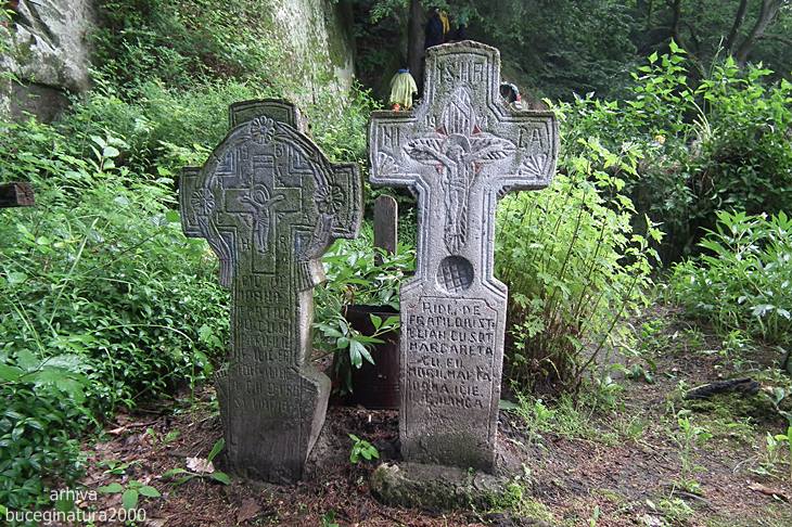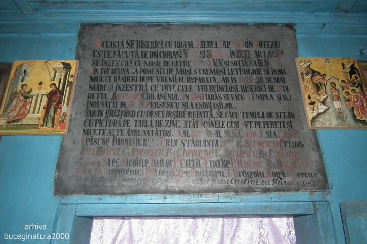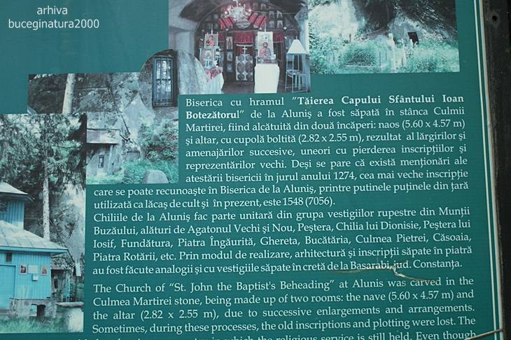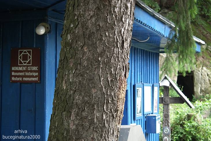 De retinut ca de la bisericuta din lemn, cum te uiti spre dreapta vezi 2 panouri: primul este despre Chilia lui Dionisie Torcatorul si al doilea, ceva mai in dreapta spune o poveste despre o grota denumita impropriu pestera: