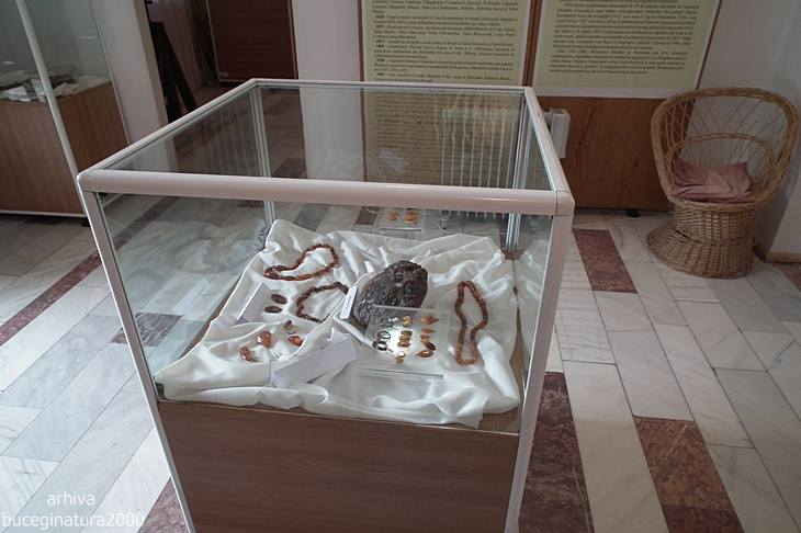 Intrarea costa 6 lei/persoana. Camera din fata este cu chihlimbar, cea din stanga are unelte si fosile, cea din dreapta tot felul roci.