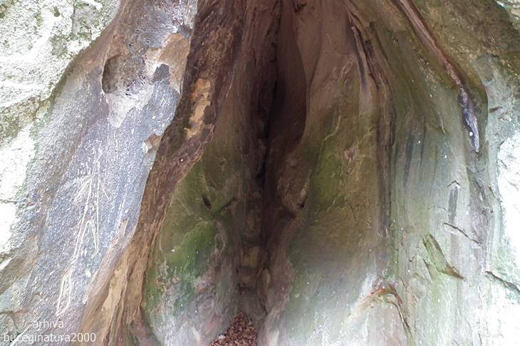 De la aceasta grota, langa care intalnim marcajele triunghi albastru si banda rosie, foarte probabil de la chilie incep, dupa cum reiese din teren… coboram pe unde am urcat in poiana.