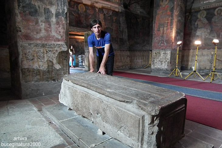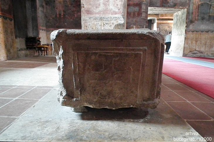 Mormantul sau piatra de mormant a unui domnitor… Nu se stie cine ar fi. La inceput se credea ca este Vladislav Vlaicu. Cel decedat avea diferite bijuterii, un inel care semana cu al Printului Negru din Anglia. Vedem si o cruce malteza de unde presupunerea unora ca poate a fost catolic… Deci, nu se stie cui a apartinut mormantul.
