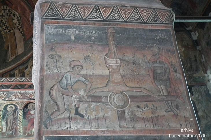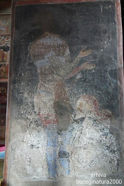 Cum era si un ghid care explica, trageam si noi cu urechile cand si cand. In opinia lui, acesta era acel renumit Print Negru. Bineinteles ca nu l-am luat in seama. Ca peste tot, unii oamenii ce stau prea mult intr-un loc, simt nevoia sa altereze unele episoade istorice si sa strecoare ei parerile lor. Cel mai probabil este un sfant din categoria celor razboinici/militari, cum erau si altii in apropierea picturii.