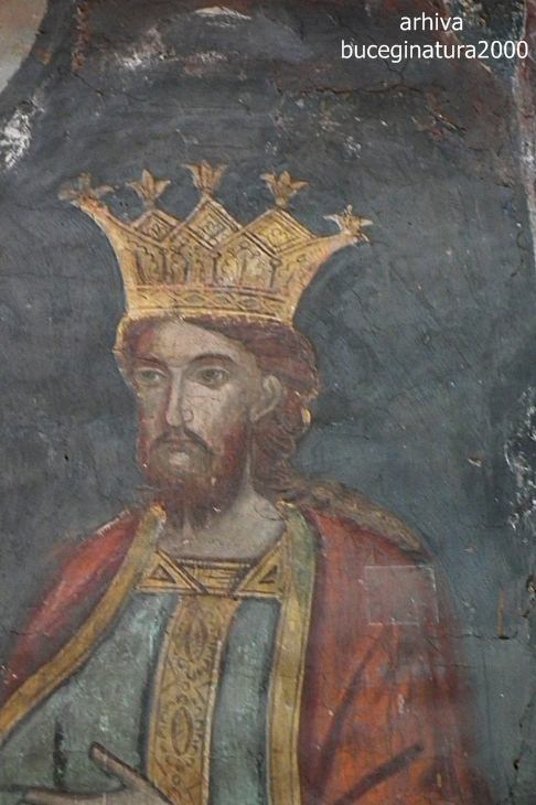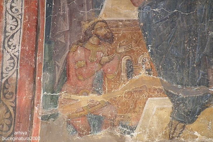 Basarab I, asa cum il stiam din manualele de istorie nu mai era Basarab I :) Brusc, in imaginea aceasta devenise Nicolae Alexandru, adica fiul lui Basarab I. Langa el este primul mitropolit al Tarii Romanesti, Iachint de la Vicina.