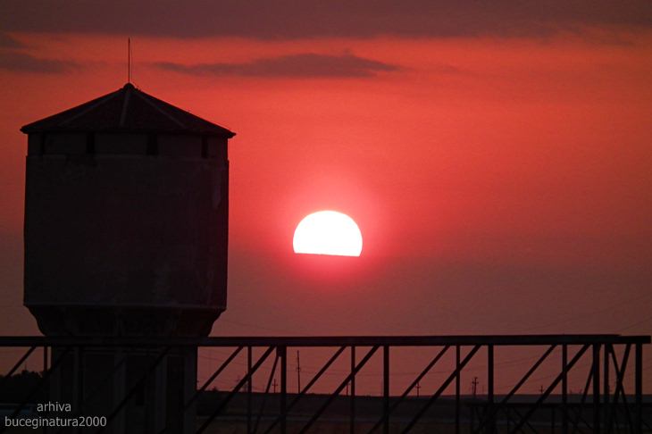 Trecand pasarela sa ajungem la trenul de Tulcea, surprindem si un rasarit superb.
