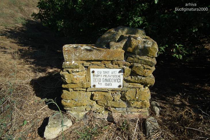 DSCF3094Dupa un arbust zarim un mic monument. Probabil cenusa scriitorului Doru Davidovici a fost risipita prin aceste locuri. Acest scriitor a fost in acelasi timp si pilot militar, decedand intr-un accident aviatic. S-au prabusit cu un Mig 21. Era prieten cu niste salvamontisti sinaieni. Primii mei bani, 4 hartii de 10 lei, ii tineam intr-o carte scrisa de el. Si azi, dupa 30 de ani sunt tot acolo :)