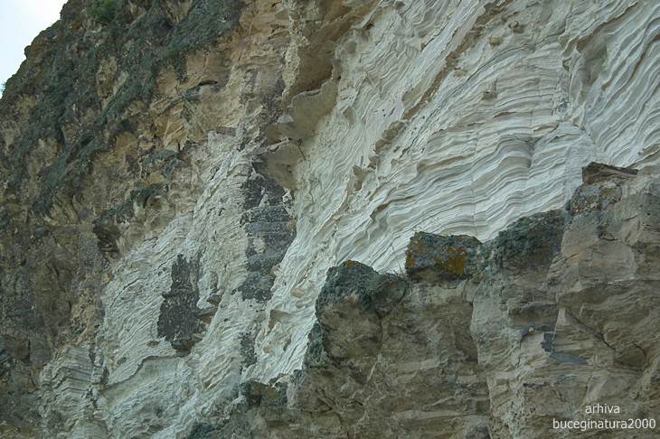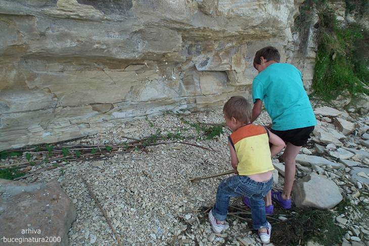 DSCF3103Curios sa ma uit la fiecare piatra din zid, zaresc o piatra sparta. Separand un pic bucatile, zaresc fosila aceasta. O piatra dintr-o cetate veche de peste 2500 de ani, in ea o fosila veche de milioane de ani. Dar cum sic transit gloria mundi :) am pornit mai departe… dorind sa strabatem tot promontoriul stancos de la Dolosman, lung de 2,5 km, pe la baza acestuia…