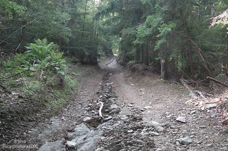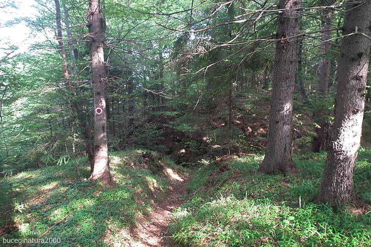 …pe o astfel de carare, marcata cu semn turistic, punctul rosu.