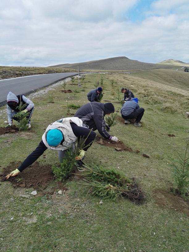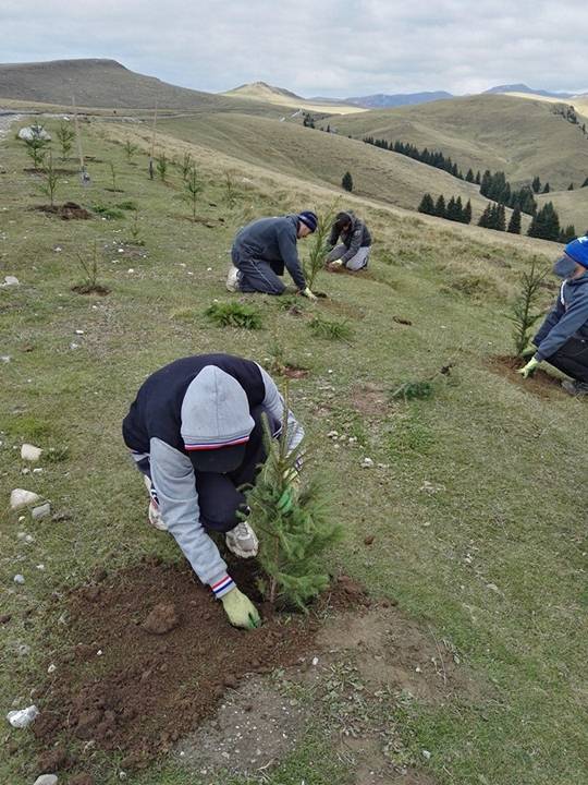 In loc sa impadureasca terenuri degradate, zonele defrisate ca sunt destule prin Bucegi, cineva i-a dus pe copiii acestia sa planteze molizi pe langa DJ 713, pe pasuni… dar mai ales la Complexul Piatra Arsa.