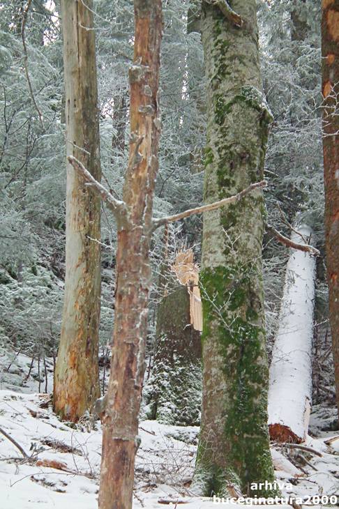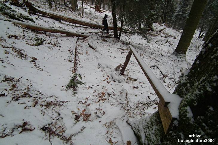 De undeva, din vale, se auzea cum cineva taia ceva cu un topor. Dupa sunet taia dintr-un fag uscat, doborat de vant, dar inca suspendat intre alti copaci. Ceea ce nu era rau deloc, mie imi place ca mai sunt localnici care merg sa ia lemne de foc din padure. Mi se pare normal. Pentru ca oamenii acestia isi iau toporul ca pe timpuri, o franghie, taie crengi, ce gasesc, le leaga si le trag pana acasa. E chiar frumos!