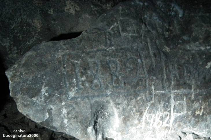 Anul 1882 in capatul pesterii. Se vede ca a fost cineva si peste 100 de ani, in 1982.