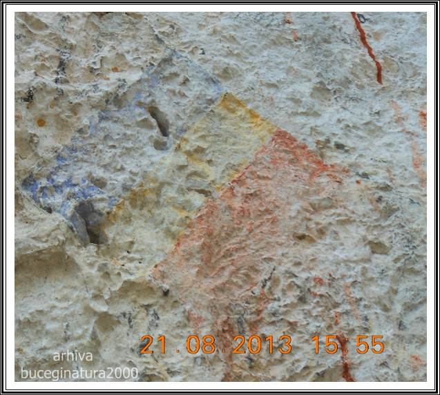 Mai incoace, gasim la Stancile Sf. Ana zugravit tricolorul. Anterior anului 1866, ca si multe alte inscriptii ce inca se mai pastreaza prin Bucegi, azi doar un ochi foarte atent il mai observa.